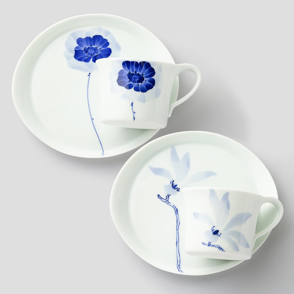 カップ&ソーサーMペアセット(アネモネ&こぶし)