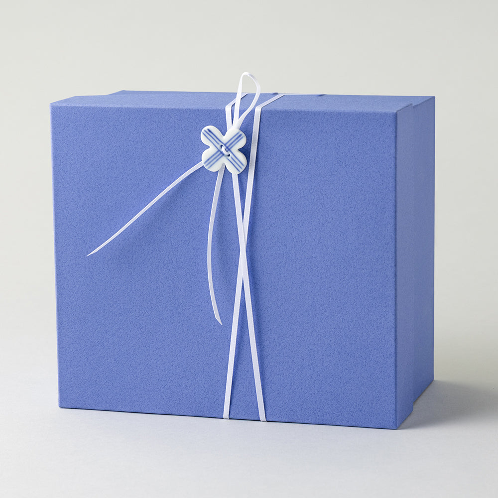 ギフトボックスは淡いブルーの眞窯オリジナル。