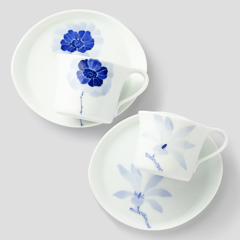 カップ&ソーサーSペアセット(アネモネ&こぶし)