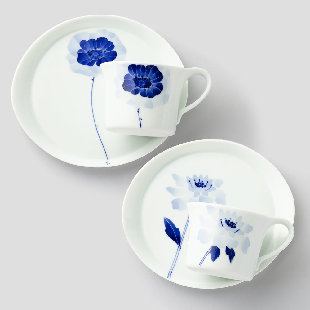 カップ&ソーサーMペアセット(アネモネ&マツムシ草)