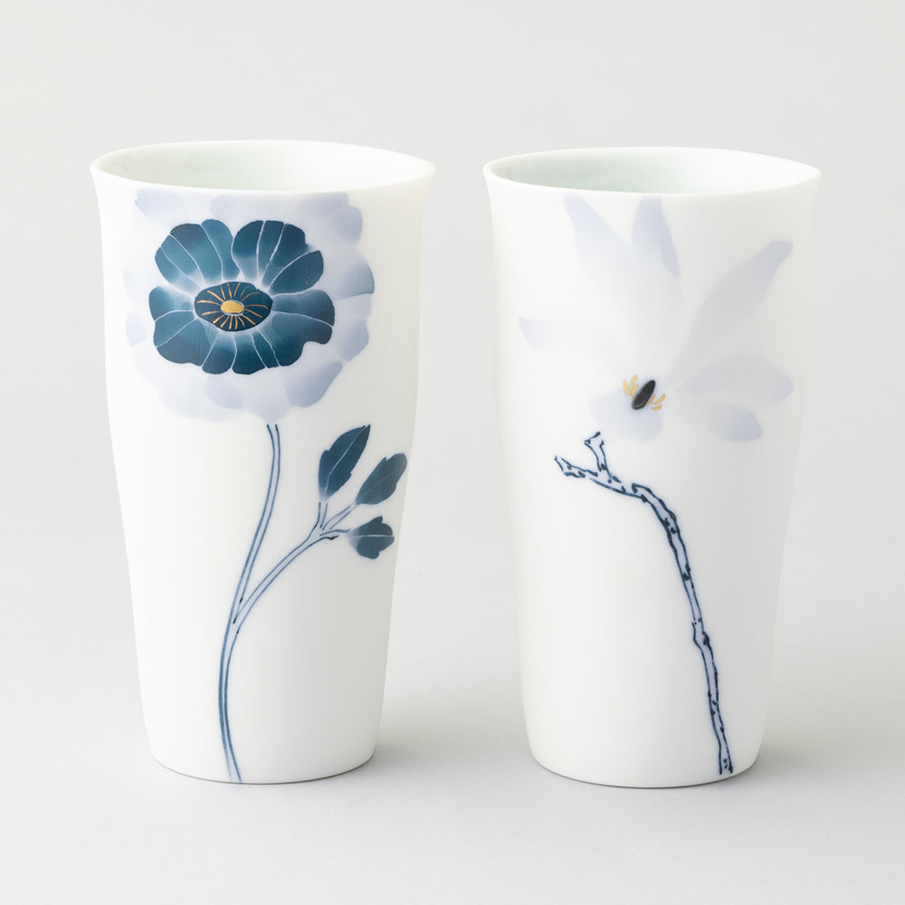 大切な人への贈りものにぴったりの、眞窯ブルーメシリーズのグラスペアセットです。
