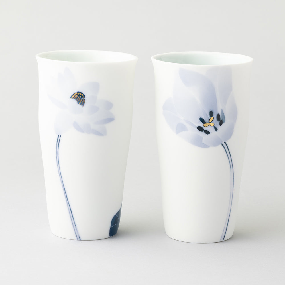 大切な人への贈りものにぴったりの、眞窯ブルーメシリーズのグラスペアセットです。