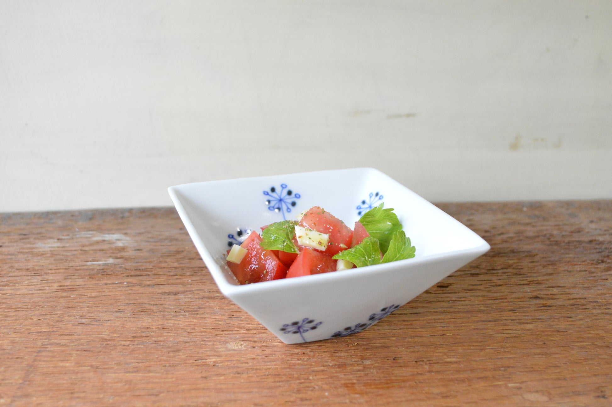 窯の中で生じた自然なゆらぎを持つスクエアなボウルは、手仕事のぬくもりが感じられる一品。サラダやおひたし、フルーツなどを盛っても◎